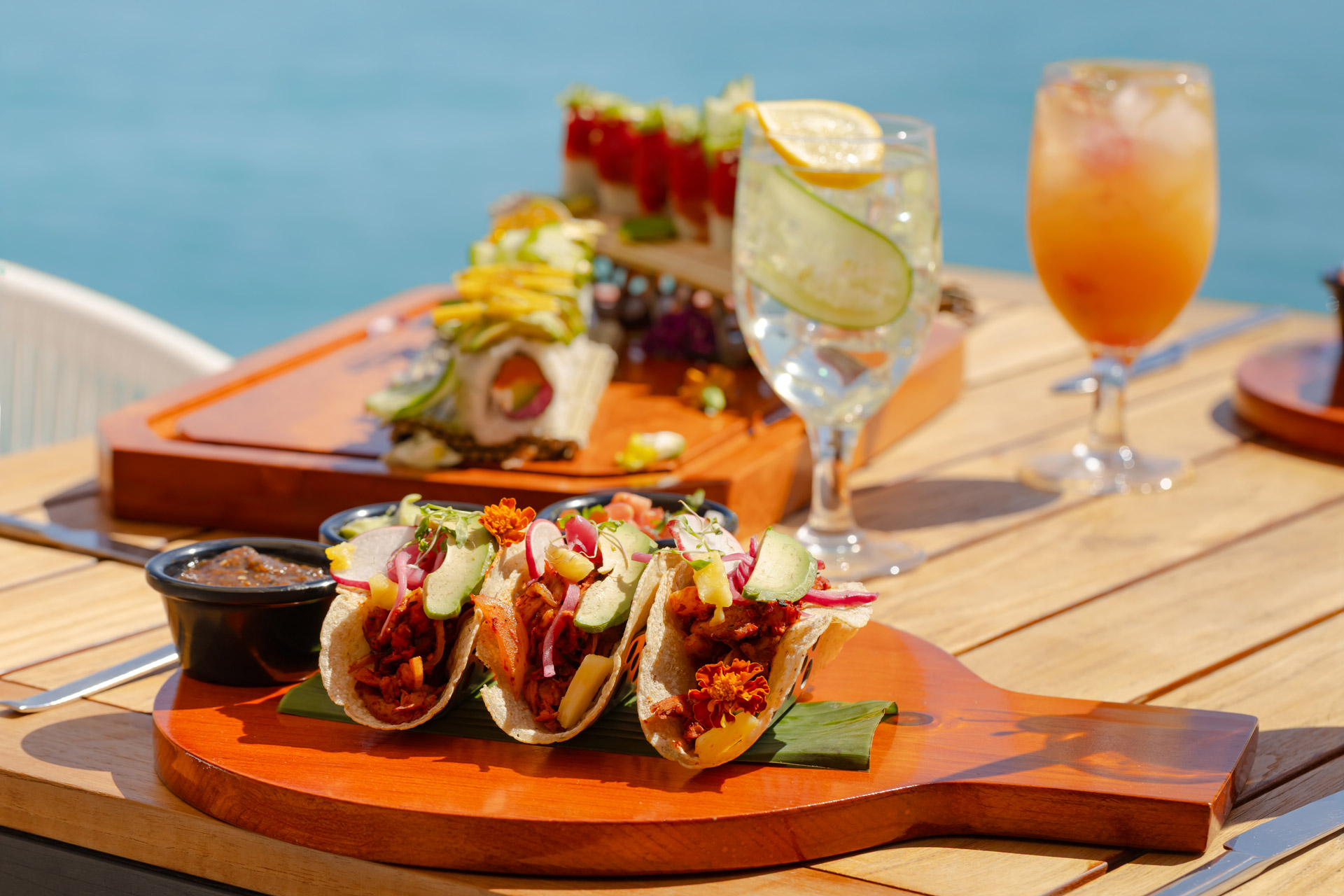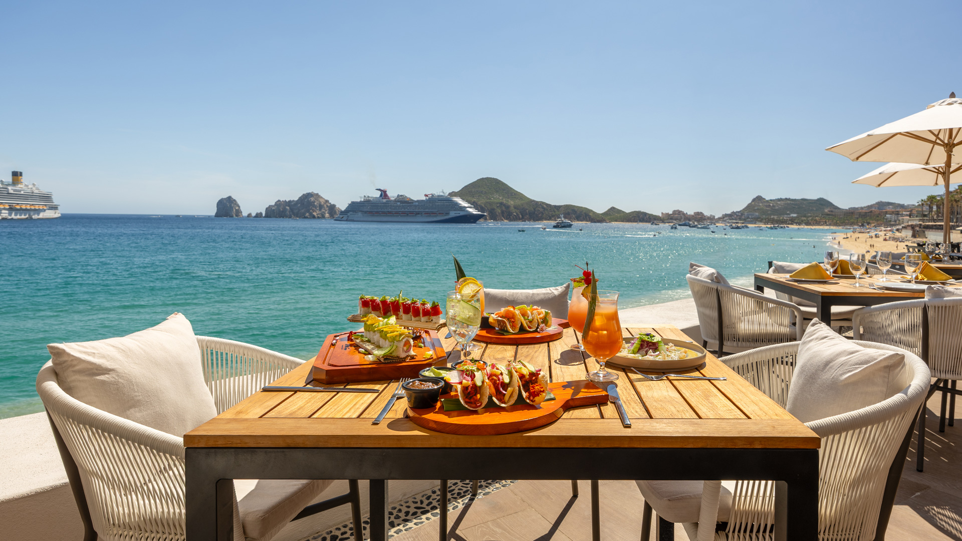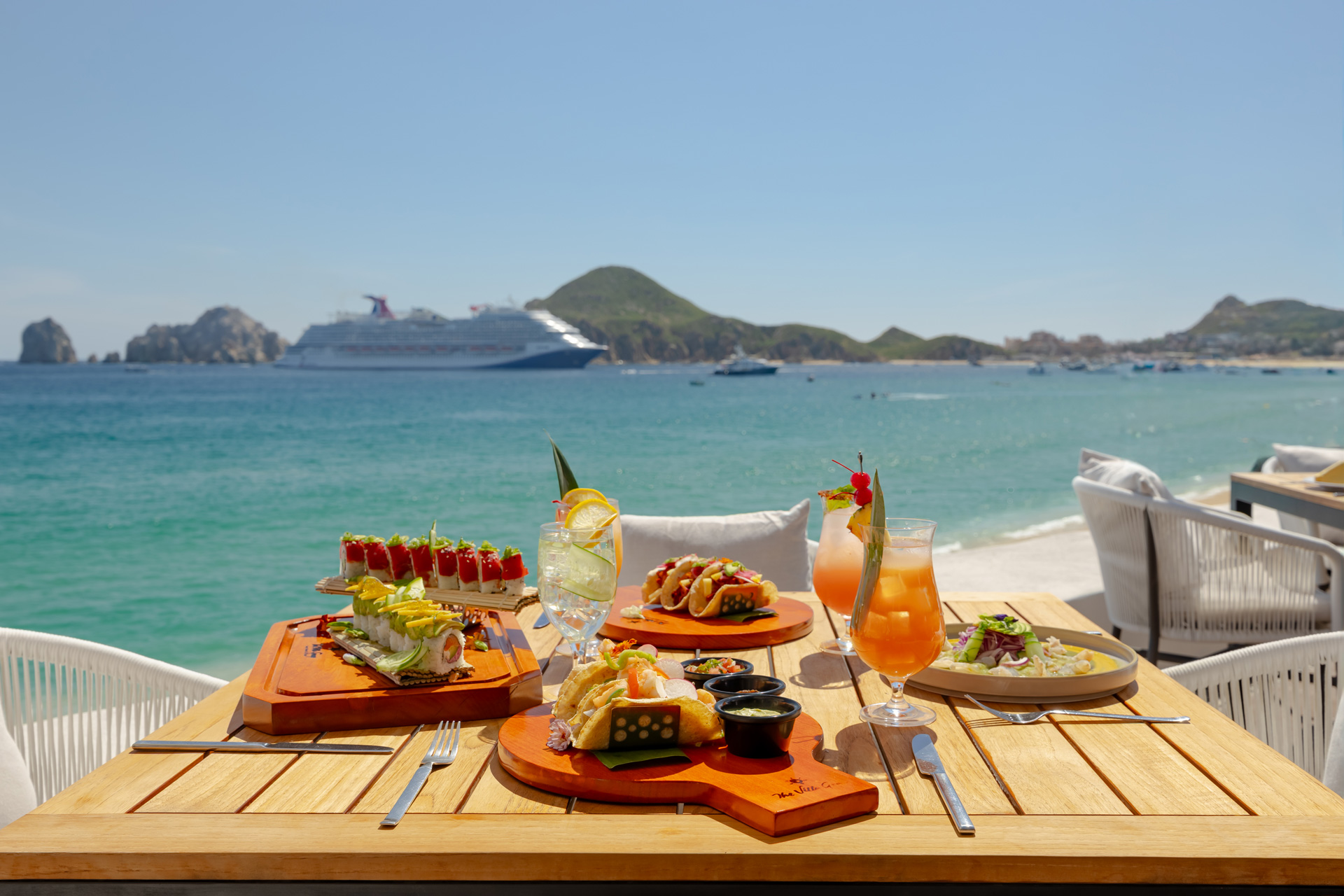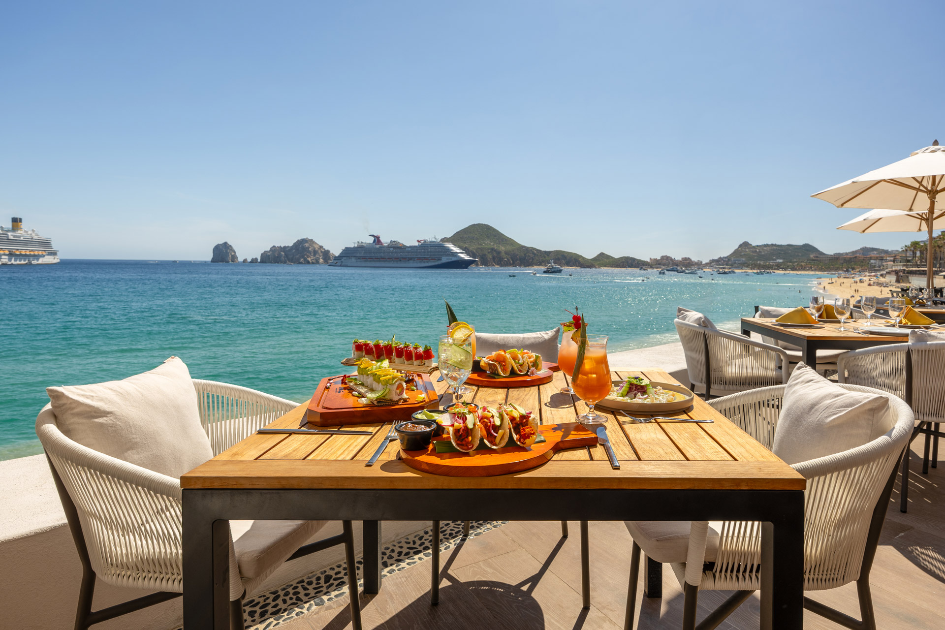 A true Mexican vacation wouldn’t be complete without indulging in the mouth watering flavors of authentic Mexican cuisine. At Villa del Palmar Cabo San Lucas, the staff knows that there is nothing more appetizing after a long day in the sun than a couple of savory tacos and a fresh margarita to wash it down. And that’s why the Taco Bar, one of the newest restaurants on the resort grounds, offers a never-ending array of grilled steak, chicken, fish and marinated pork tacos, combined with succulent salsas and garnishes, which has made the poolside restaurant a favorite among guests. Adding to the overall experience is the incredible view of El Arco. The relaxing environment, great food, and friendly service are just a few of the perks guests can expect when dining at any of Villa del Palmar’s restaurants. The Taco Bar in particular, has such a stunning view overlooking the Sea of Cortez that guests tend to linger, taking in their surroundings, basking in the beauty of Cabo and possibly letting the little ones enjoy a little more pool time.